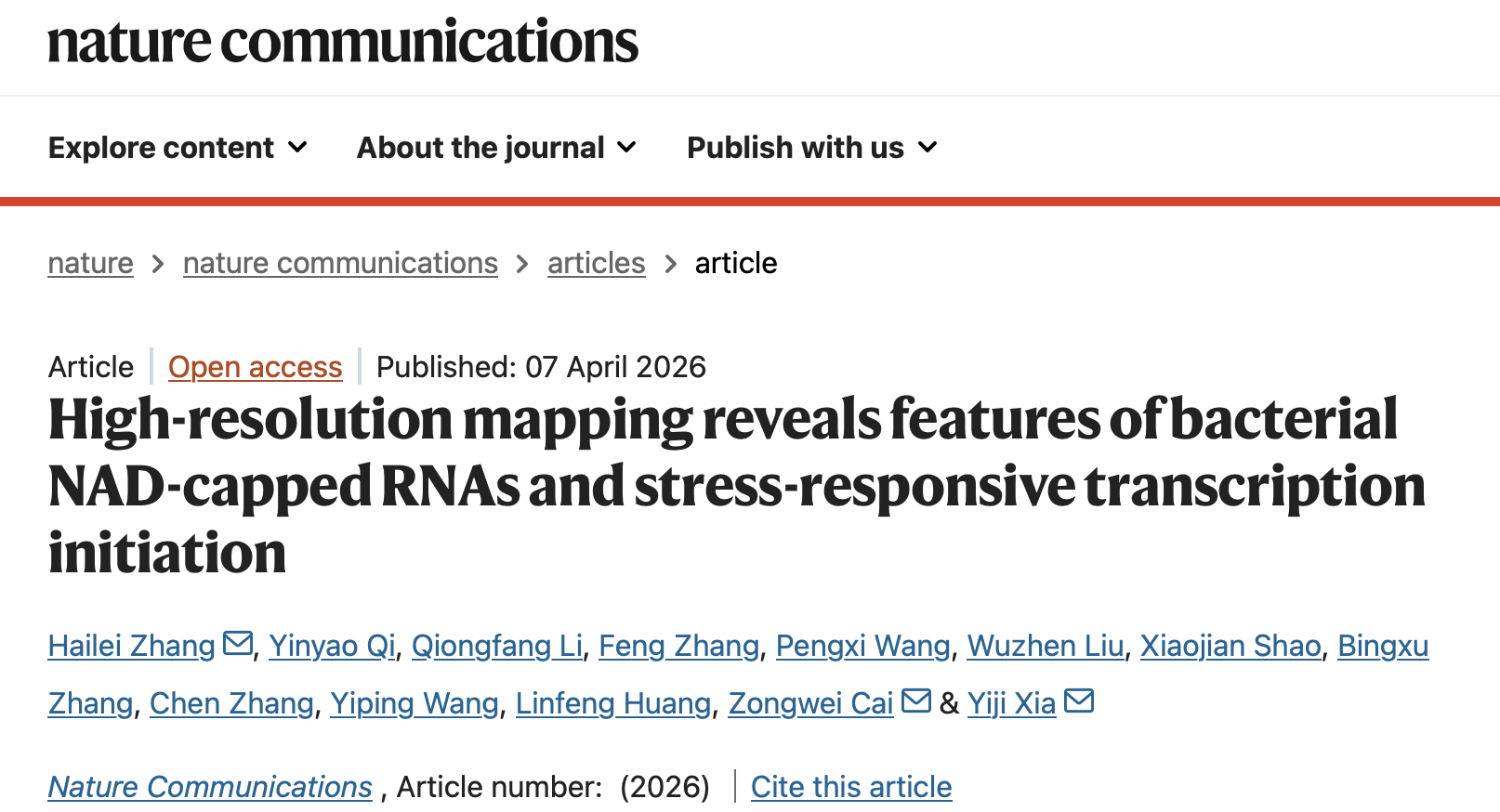 4月7日,浙江万里学院生物与环境学院夏亦荠与张海磊研究团队于Nature Communications发表题为《High-resolution mapping reveals features of bacterial NAD-capped RNAs and stress-responsive transcription initiation》的研究论文,该研究构建了高精度的细菌NAD加帽RNA(NAD-RNA)鉴定体系,绘制了大肠杆菌NAD-RNA的全转录组高分辨率图谱。