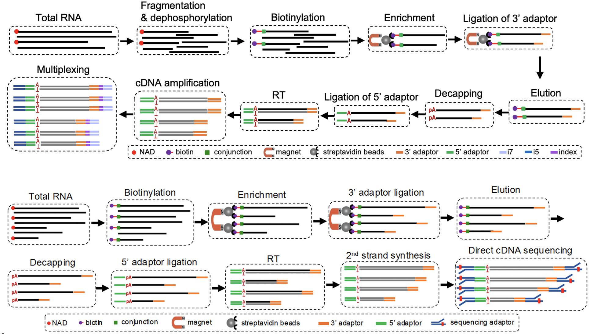 图1. pNAD-seq(上)和NAD-linkSeq(下)流程图